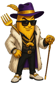 Smooth-talking and sauce dripping, Mac Daddy runs the Pasta Bish world with unmatched confidence. Flashy fits, gold forks, designer shades he’s all about flavor, flair, and fast lanes. A master charmer with a taste for spotlight, Mac Daddy lives loud and serves pasta even louder.